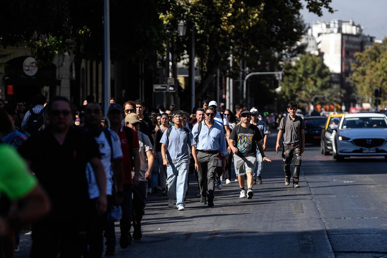 2月25日,人們在停電期間走在智利首都圣地亞哥街頭。新華社發(fā)(豪爾赫·比列加斯攝)