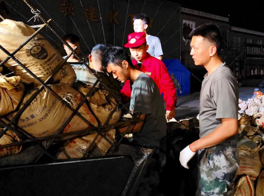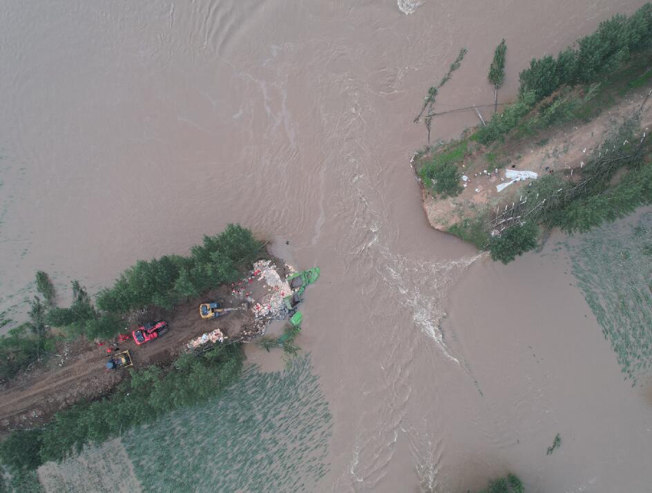 今天上午1臺(tái)挖掘機(jī)和1臺(tái)推土機(jī)已被運(yùn)送至決口右岸,救援隊(duì)員抓緊轉(zhuǎn)運(yùn)鋼筋籠和沙袋,19時(shí),救援人員把沙袋裝入鋼筋籠,由推土機(jī)將其推入河中,以封堵決口、加固堤壩,有效加速?zèng)Q口合攏。