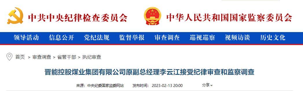 中央紀(jì)委國(guó)家監(jiān)委網(wǎng)站2月13日消息, 據(jù)山西省紀(jì)委監(jiān)委消息:晉能控股煤業(yè)集團(tuán)有限公司原副總經(jīng)理李云江涉嫌嚴(yán)重違紀(jì)違法,目前正接受山西省紀(jì)委監(jiān)委紀(jì)律審查和監(jiān)察調(diào)查。