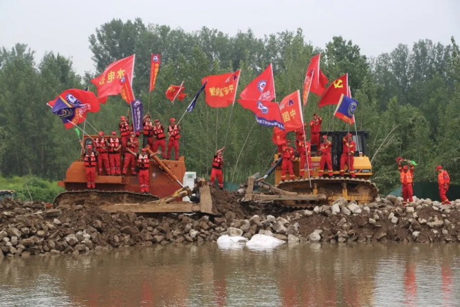 搶險(xiǎn)過程中,中國(guó)安能充分發(fā)揮集團(tuán)化作戰(zhàn)優(yōu)勢(shì)、專業(yè)技術(shù)優(yōu)勢(shì)、頑強(qiáng)作風(fēng)優(yōu)勢(shì),采取“道路搶通、主堤防護(hù)、圍堰進(jìn)占、潰口封堵”的戰(zhàn)法實(shí)施救援;針對(duì)搶修筑路保通難、保障多元融合難、堤防加固圍堰搶筑時(shí)間緊、車輛眾多指揮難等不利因素,積極與地方政府共同研究道路疏通、保通方案,確保封堵石料及時(shí)運(yùn)抵救援現(xiàn)場(chǎng);全體搶險(xiǎn)隊(duì)員發(fā)揚(yáng)特別能吃苦、特別能戰(zhàn)斗的頑強(qiáng)精神,頂烈日、斗酷暑,24小時(shí)輪班作業(yè),全力以赴加快進(jìn)度,提前完成第一道防線和第二道防線加固任務(wù)。