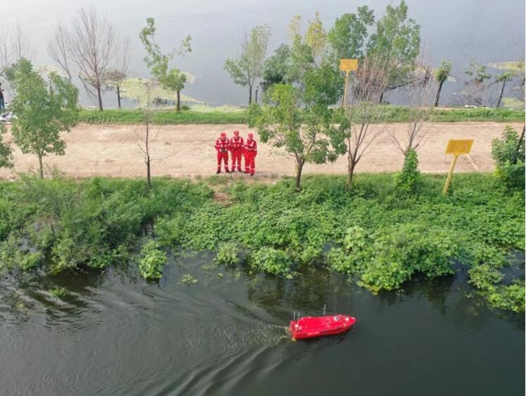 8月5日,天津靜海大清河,技術(shù)人員利用無人偵測船不間斷監(jiān)測水情,探測水下地形地物,快速準(zhǔn)確獲取水下堆體數(shù)據(jù)及模型……