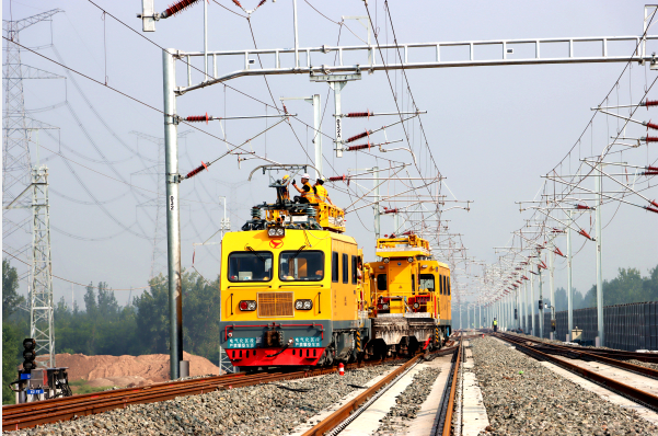 試驗車在安次站進行接觸網(wǎng)冷滑作業(yè)