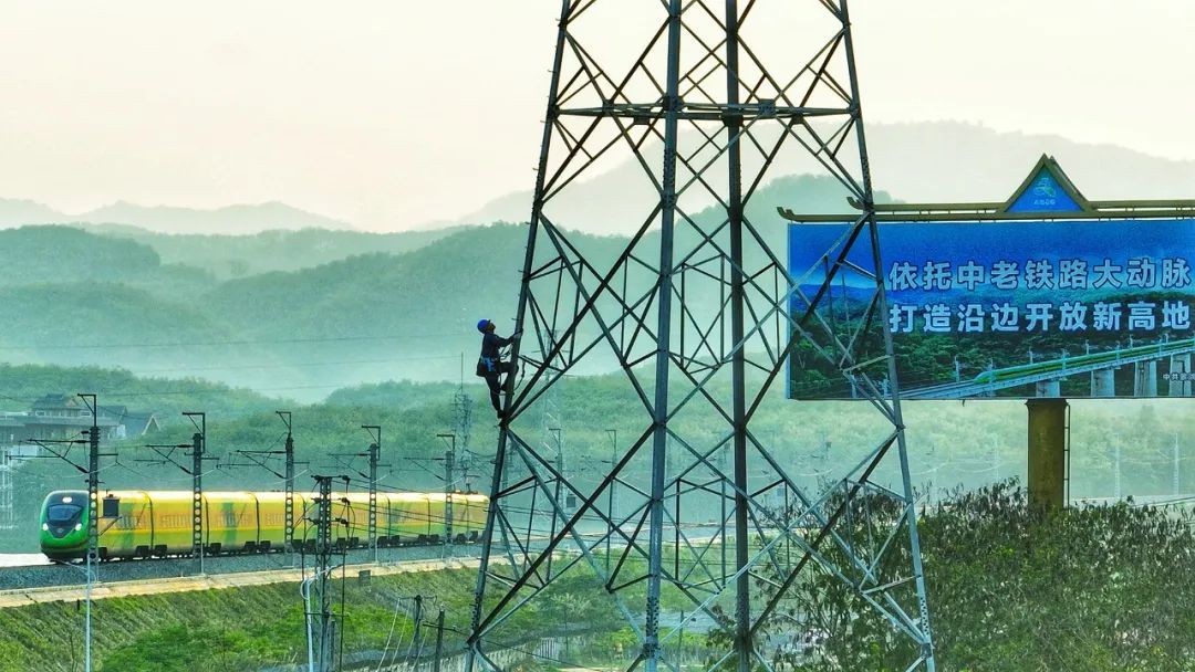 南方電網(wǎng)工作人員對中老鐵路沿線線路進(jìn)行運(yùn)維。(李志杰)