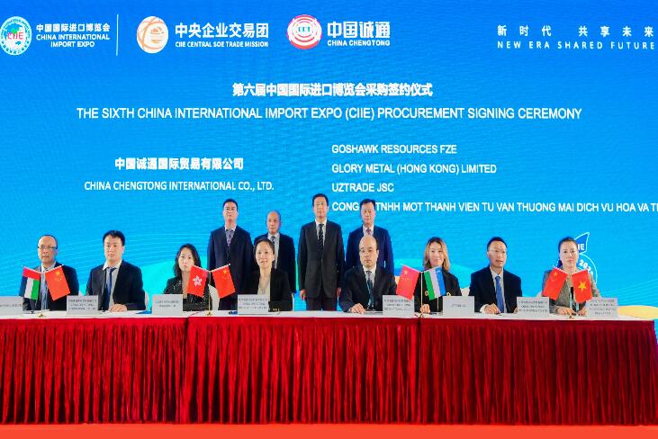 11月7日,中國誠通4家所出資企業(yè)分別與來自阿聯(lián)酋、巴西等14個(gè)國家和地區(qū)的28家客商簽署采購協(xié)議。簽約金額合計(jì)達(dá)18.5億美元,較上屆進(jìn)博會(huì)增長12%,較首屆增長106%。采購產(chǎn)品既有鉻礦、錳礦、煤炭、紙漿、甲醇、棉紗等重要資源型產(chǎn)品,也有如電極、電池裝配設(shè)備等高新技術(shù)產(chǎn)品首次參加簽約。