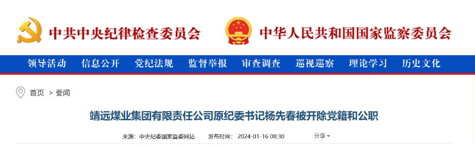 靖遠(yuǎn)煤業(yè)集團(tuán)原紀(jì)委書記楊先春被雙開