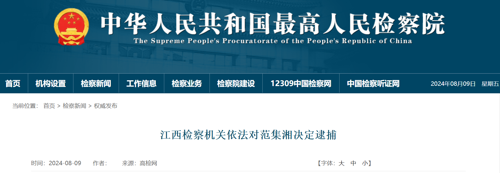 中國電力建設(shè)集團(tuán)有限公司原黨委副書記、董事長范集湘涉嫌受賄、利用影響力受賄一案,由江西省監(jiān)察委員會(huì)調(diào)查終結(jié),移送檢察機(jī)關(guān)審查起訴。日前,經(jīng)最高人民檢察院指定管轄,江西省南昌市人民檢察院依法以涉嫌受賄罪、利用影響力受賄罪對(duì)范集湘作出逮捕決定。案件正在進(jìn)一步辦理中。