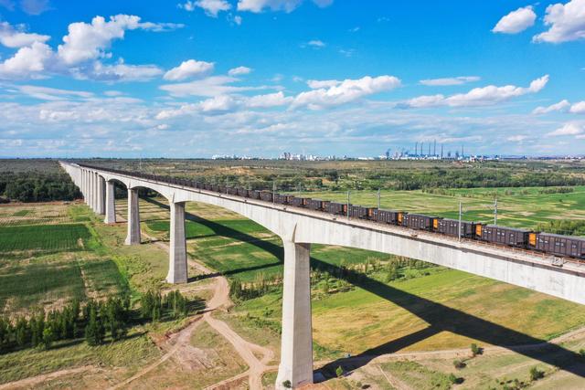 這是在準(zhǔn)格爾旗境內(nèi)拍攝的運煤專列(7月8日攝,無人機照片)。