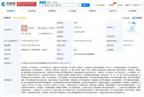天眼查App顯示,一米八海洋科技(浙江)有限公司的法定代表人為鄧中華,注冊資本1.1億人民幣,經(jīng)營范圍包括水產(chǎn)養(yǎng)殖、食品銷售、水產(chǎn)品冷凍加工、輸電供電、海上風電相關(guān)系統(tǒng)研發(fā)、儲能技術(shù)服務(wù)等。