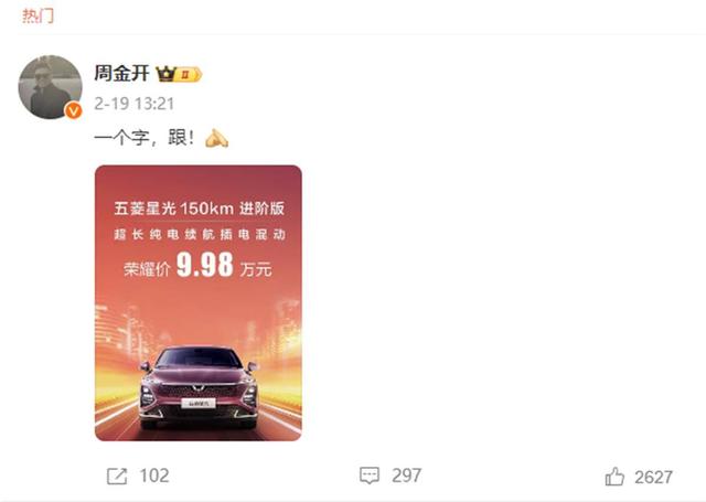 上汽通用五菱品牌事業(yè)部副總經(jīng)理周钘在微博表示跟進降價