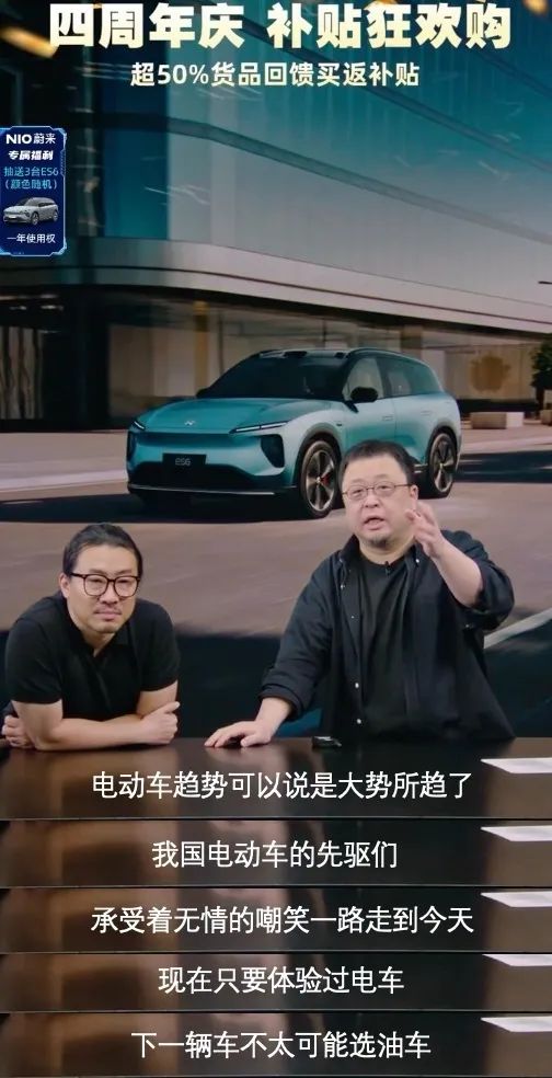 而老羅帶貨蔚來則“廣告”的屬性更為明顯,基本上就相當于一場“直播間專屬廣告”。在老羅極具個人特色的介紹下,蔚來在羅永浩的直播間進行了一次“科普”。不論效果如何,老羅還是制造了“只要體驗過電車,下一輛車就不太可能是油車”這樣頗具傳播效果的金句。