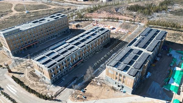 2月7日,鄂爾多斯職業(yè)學院正在建設安裝一座容量為0.8MW的光伏電站,為學院提供綠電供應。受訪者供圖