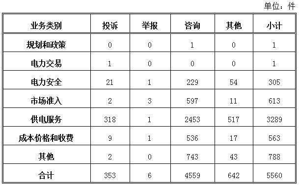 投訴舉報(bào)主要集中在電力行業(yè),共359件。從業(yè)務(wù)分類情況看,電力交易方面1件,占0.28%;電力安全方面22件,占6.13%;市場(chǎng)準(zhǔn)入方面5件,占1.39%;供電服務(wù)方面319件,占88.86%;成本價(jià)格和收費(fèi)方面10件,占2.79%;其他方面2件,占0.56%。(2018年5月電力行業(yè)有效信息按業(yè)務(wù)分類情況見表二)