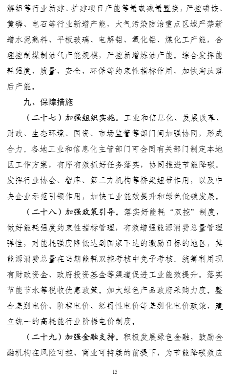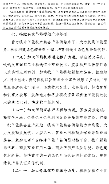 工業(yè)和信息化部等六部門關于印發(fā)工業(yè)能效提升行動計劃的通知