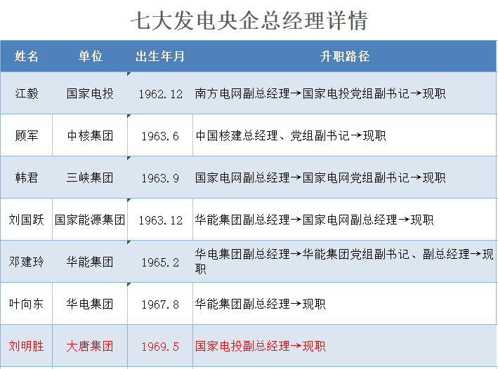 7位發(fā)電央企總經(jīng)理的詳細(xì)檔案(按年齡排序)