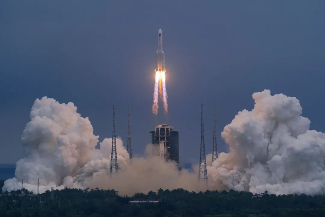 征途無(wú)限,前行不怠。圖為長(zhǎng)征五號(hào)B運(yùn)載火箭發(fā)射空間站天和核心艙。(宿東 攝)