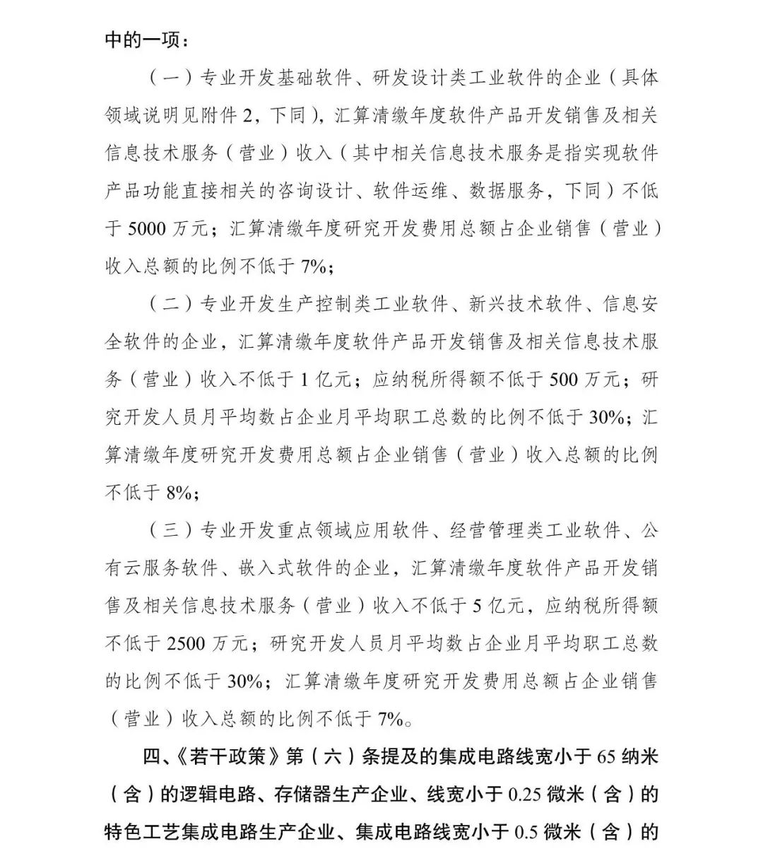 為促進(jìn)我國集成電路產(chǎn)業(yè)持續(xù)健康發(fā)展,根據(jù)《國務(wù)院關(guān)于印發(fā)新時(shí)期促進(jìn)集成電路產(chǎn)業(yè)和軟件產(chǎn)業(yè)高質(zhì)量發(fā)展若干政策的通知》(國發(fā)〔2020〕8號(hào),以下簡稱《若干政策》)及其配套政策有關(guān)規(guī)定,經(jīng)研究,2023年享受稅收優(yōu)惠政策的集成電路企業(yè)或項(xiàng)目、軟件企業(yè)清單(以下簡稱“清單”)制定工作,延用2022年清單制定程序、享受稅收優(yōu)惠政策的企業(yè)條件和項(xiàng)目標(biāo)準(zhǔn)?,F(xiàn)就有關(guān)事項(xiàng)通知如下: