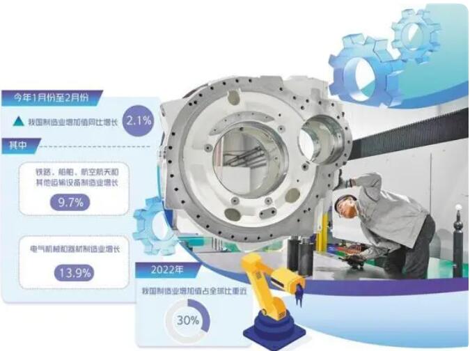 國家統(tǒng)計(jì)局最新數(shù)據(jù)顯示,今年1月份至2月份,我國制造業(yè)增加值同比增長2.1%。其中,化學(xué)原料和化學(xué)制品制造業(yè)增長7.8%,鐵路、船舶、航空航天和其他運(yùn)輸設(shè)備制造業(yè)增長9.7%,電氣機(jī)械和器材制造業(yè)增長13.9%,表現(xiàn)亮眼。