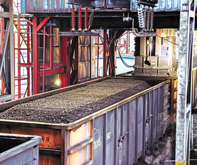 裝煤 陜西省榆林市 國家能源集團神東煤炭洗選中心大柳塔環(huán)線裝車車間裝煤現(xiàn)場。