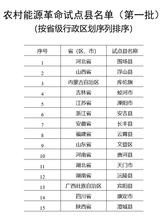 國(guó)家能源局綜合司 生態(tài)環(huán)境部辦公廳 農(nóng)業(yè)農(nóng)村部辦公廳關(guān)于公布農(nóng)村能源革命試點(diǎn)縣名單(第一批)的通知
