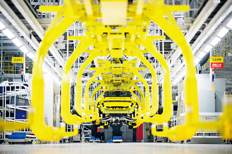 推進(jìn)新型工業(yè)化是實(shí)現(xiàn)經(jīng)濟(jì)高質(zhì)量發(fā)展的戰(zhàn)略選擇。圖為2023年1月11日,湖北省武漢市經(jīng)開區(qū)智能網(wǎng)聯(lián)和電動(dòng)汽車產(chǎn)業(yè)園內(nèi),工人在一家汽車公司的流水線上作業(yè)。 新華社記者 肖藝九/攝