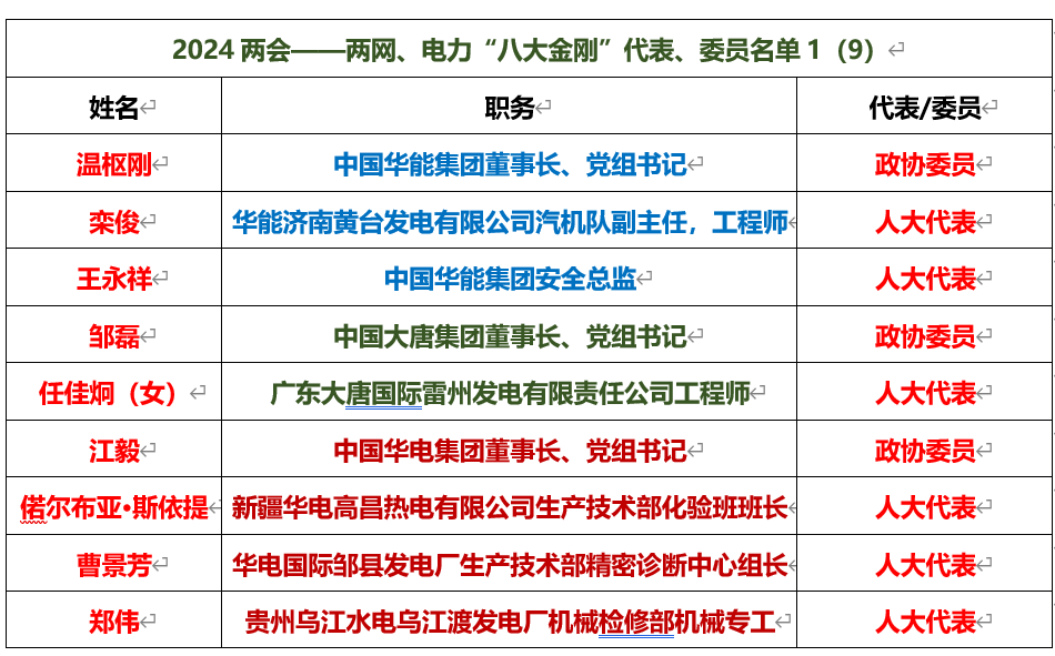 2024年能源、電力領(lǐng)域兩會代表、委員全名單!