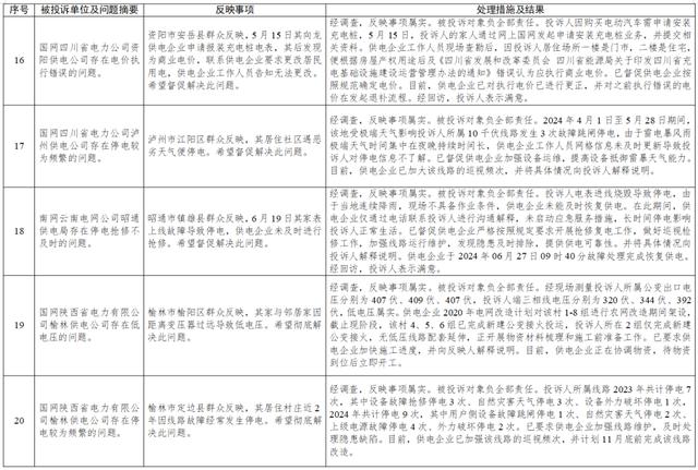 針對(duì)群眾反映的投訴舉報(bào),國家能源局派出機(jī)構(gòu)嚴(yán)格根據(jù)國家有關(guān)法規(guī)政策規(guī)定進(jìn)行處理。一是督促供電企業(yè)加強(qiáng)臺(tái)區(qū)等設(shè)備改造力度,縮短供電半徑,提高電網(wǎng)轉(zhuǎn)供、互供能力,解決故障停電、低電壓等電能質(zhì)量問題;二是要求供電企業(yè)加強(qiáng)設(shè)備隱患排查整治、停電搶修管理,加大線路巡視頻次,及時(shí)消除隱患缺陷,增加搶修資源投入,提升設(shè)備管控和停電搶修能力,切實(shí)提高供電質(zhì)量;三是通過行政處罰、監(jiān)管約談、責(zé)令整改等方式,糾正有關(guān)企業(yè)違法違規(guī)行為,維護(hù)公平公正的市場秩序和群眾合法權(quán)益;四是通過解釋說明、澄清事實(shí),消除群眾誤解。(2024年7月12398熱線典型投訴舉報(bào)事項(xiàng)具體處理情況,見附件2)
