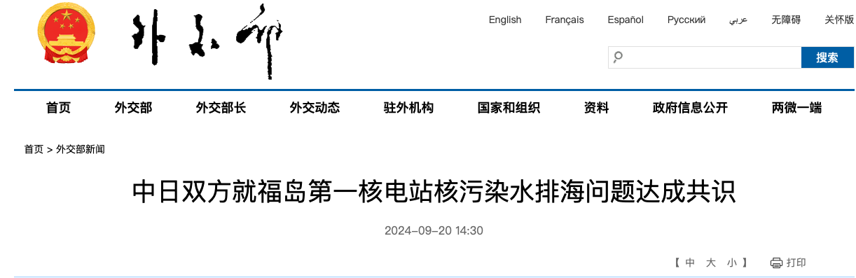 外交部:中日雙方就福島第一核電站核污染水排海問題達成共識