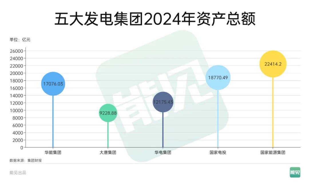 經(jīng)「能見」梳理,2024年五大發(fā)電集團總營收達21536.38億元,較上年減少近141億元;凈利潤為2179.92億元,同比增長16.39%;利潤總額為2871.48億元;資產(chǎn)總額合計79665.03億元,即將突破8萬億元。