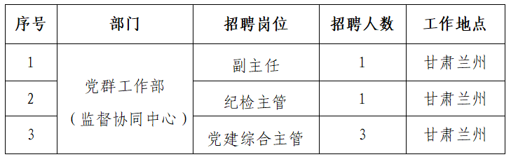 自成立以來,甘肅公司高度重視人才培養(yǎng)工作,為員工搭建了廣闊的發(fā)展平臺,著力于公司和員工共同成長,現(xiàn)根據(jù)公司發(fā)展需要,面向社會公開招聘部分崗位工作人員,具體事項(xiàng)公告如下: