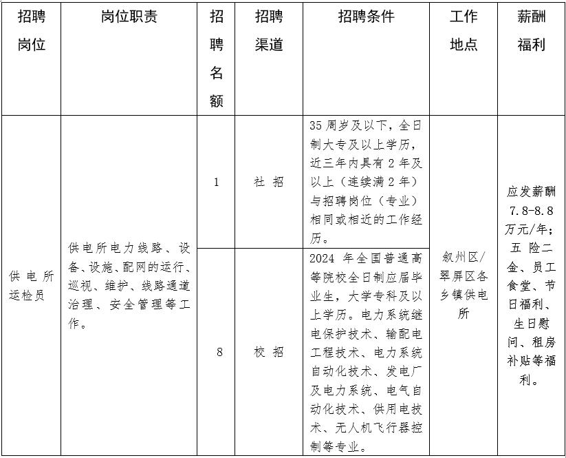 1.專業(yè)、學(xué)歷以及工作履歷等各項(xiàng)基本條件應(yīng)滿足四川能投宜賓市敘州電力有限公司招聘崗位條件的要求。