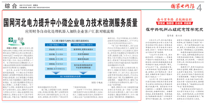 據(jù)悉,國網(wǎng)河北電力將梳理所屬各單位業(yè)務(wù)流程,進(jìn)一步推廣應(yīng)用財(cái)務(wù)自動化處理機(jī)器人,提升該公司財(cái)務(wù)智能化、精益化管理水平,為中小微企業(yè)客戶提供更優(yōu)質(zhì),便捷的服務(wù)。