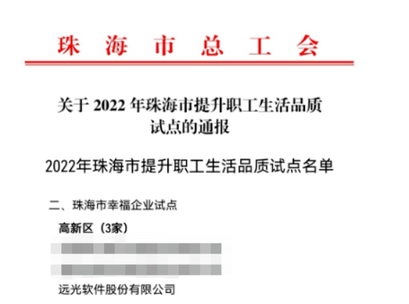 本次入選珠海市幸福企業(yè)試點(diǎn)單位是對(duì)遠(yuǎn)光軟件做好職工服務(wù)工作的肯定。按照試點(diǎn)任務(wù)要求,下一步,遠(yuǎn)光軟件將從改善職工生活條件、健全完善職工困難幫扶機(jī)制、依法保障職工享受福利待遇、豐富服務(wù)職工供給資源、建立職工健康服務(wù)體系、加強(qiáng)職工人文關(guān)懷、推動(dòng)勞動(dòng)關(guān)系和諧穩(wěn)定等方面,全力塑造職工生活幸福發(fā)展環(huán)境,創(chuàng)建職工生活幸福型企業(yè),更好滿足廣大職工群眾對(duì)美好生活的需要。