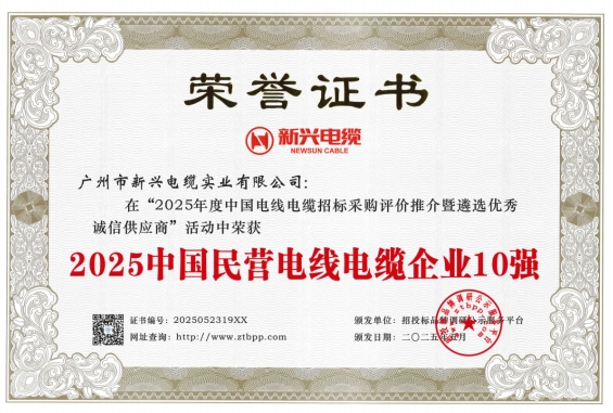 近日,在招投標(biāo)品牌調(diào)研公示服務(wù)平臺(tái)主辦的第四屆“2025年度中國(guó)電線電纜招標(biāo)采購(gòu)評(píng)價(jià)推介暨遴選優(yōu)秀誠(chéng)信供應(yīng)商活動(dòng)”中,新興電纜憑借卓越的產(chǎn)品質(zhì)量和技術(shù)實(shí)力,獲得五項(xiàng)行業(yè)重要認(rèn)可:"2025中國(guó)電力電纜供應(yīng)商綜合實(shí)力50強(qiáng)"、"2025中國(guó)民營(yíng)電線電纜企業(yè)10強(qiáng)"、"2025中國(guó)電線電纜招標(biāo)采購(gòu)十大推薦品牌"、"2025中國(guó)電力電纜十大品牌"和"2025中國(guó)電線電纜十大綠色品牌"。