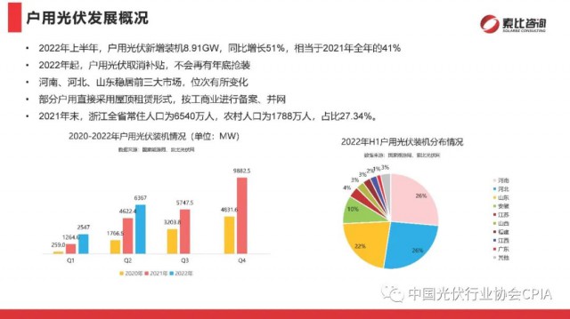 2022年9月27日,在中國光伏行業(yè)協(xié)會的指導和國內領先的分布式戶用企業(yè)支持下,由索比光伏網主辦的“2022年中國戶用光伏品牌大會暨中東部省份分布式項目開發(fā)研討會”在浙江寧波召開。索比光伏網副主編尹也澤對光伏供應鏈與分布式應用市場進行了回顧展望。尹也澤副主編分析,整體看,今年全年全國光伏發(fā)電新增裝機有望超過90GW,其中分布式光伏仍將占據“半壁江山”。