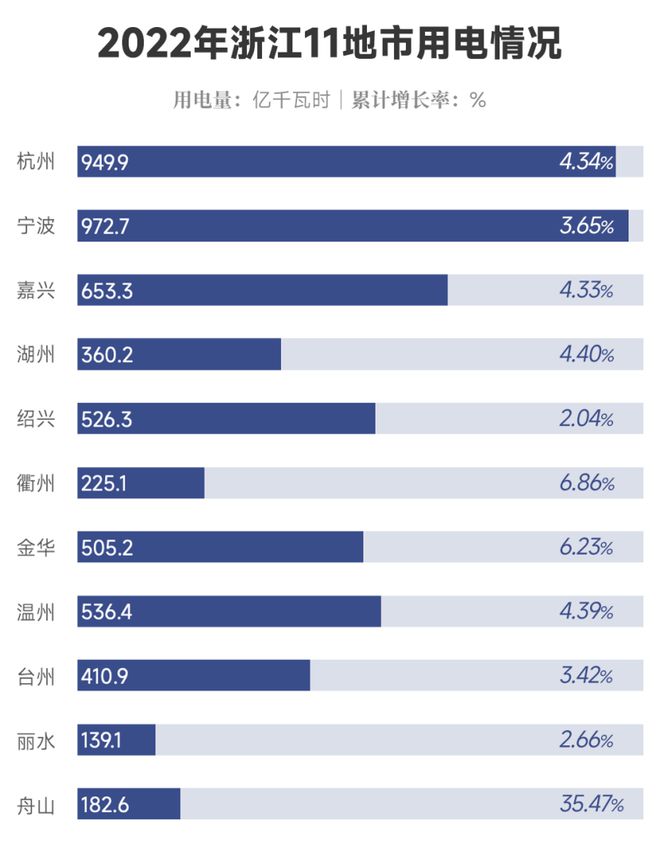 而新能源車整車制造行業(yè)用電則集中在金華、杭州、湖州、寧波等地。2022年,杭州、湖州、寧波三地行業(yè)用電分別增長78.23%、23.70%、78.52%。隨著新能源車整車制造的快速發(fā)展,配套新能源電池產(chǎn)業(yè)、充電樁制造、汽車零配件等行業(yè)也在溫州、臺州等地快速發(fā)展。2022年,比亞迪電池、瑞普新能源等一批企業(yè)在集中在溫州、臺州落地項目。在電動汽車成為未來汽車行業(yè)發(fā)展的大方向不變的情況下,新能源車整車制造行業(yè)在未來有望繼續(xù)延續(xù)眼下的火熱增長態(tài)勢。