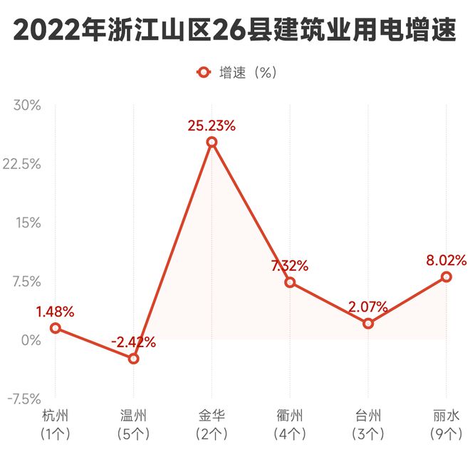 2022年,全省建筑業(yè)用電量為102.64億千瓦時,同比下降1.75%。山區(qū)26縣全年建筑業(yè)用電量12.08億千瓦時,同比增長3.82%,增速高于全省平均水平,實現(xiàn)了逆勢增長。這是浙江推進山海協(xié)作,加快補齊山區(qū)縣域交通基礎(chǔ)設(shè)施、新型城鎮(zhèn)化建設(shè)短板,在電量上的正向體現(xiàn)。