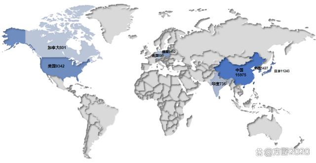 在過去20年間,車用氫能專利區(qū)域分布如圖5所示。中國、日本和美國在車用氫能技術(shù)領(lǐng)域擁有較高的專利申請量,是當(dāng)前全球范圍內(nèi)較有技術(shù)競爭力和市場競爭力的地區(qū)國家。