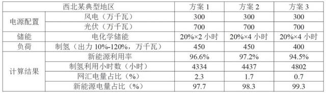上述計(jì)算表明采用制氫作為柔性負(fù)荷是一種可行的新能源基地消納解決方案。得益于電解水制氫的柔性負(fù)荷對波動(dòng)性電源的適應(yīng)性,在三種不同的方案中,棄電率均低于6%,這與傳統(tǒng)的新能源大基地10%~15%左右的棄電率相比,新能源的利用率有了明顯的提高。