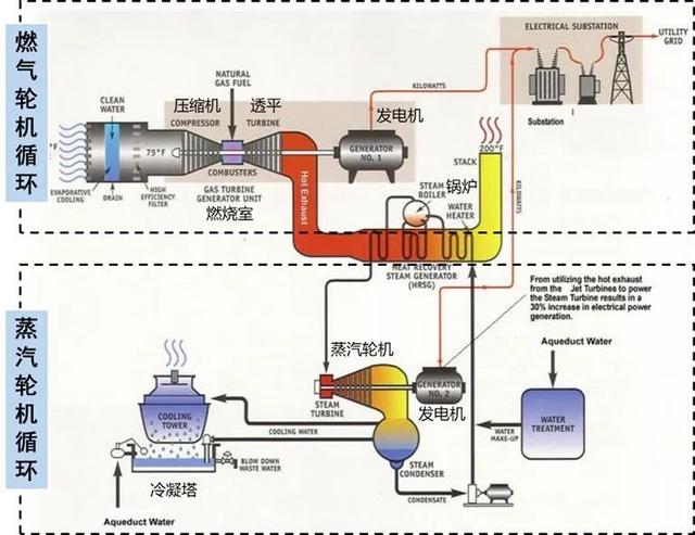 燃?xì)鈾C(jī)“一拖一”聯(lián)合循環(huán)發(fā)電機(jī)組發(fā)電原理圖
