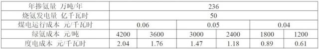 煤電燒氨經(jīng)濟(jì)性評估(年利用小時(shí)數(shù)3000小時(shí))