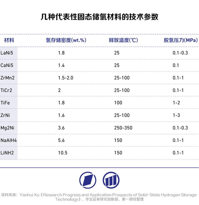 固態(tài)儲(chǔ)氫是近年來(lái)的新亮點(diǎn),分為物理吸附儲(chǔ)氫和化學(xué)儲(chǔ)氫兩種路線(xiàn)。物理吸附儲(chǔ)氫是指通過(guò)范德華力將氫氣分子吸附在固體表面,儲(chǔ)氫材料包括碳基材料、無(wú)機(jī)多孔材料和金屬有機(jī)骨架化合物等,其缺點(diǎn)主要在于大多數(shù)物理吸附類(lèi)材料在較低的溫度下才能達(dá)到一定的儲(chǔ)氫密度,常溫常壓下吸氫量很低?;瘜W(xué)儲(chǔ)氫材料主要包括金屬氫化物、配位氫化物、化學(xué)氫化物等。其中,金屬氫化物因其高氫儲(chǔ)存容量和良好的循環(huán)穩(wěn)定性而成為研究重點(diǎn)。固態(tài)儲(chǔ)氫可在接近常溫常壓的環(huán)境中完成儲(chǔ)放,兼具體積儲(chǔ)氫密度高、可逆性、循環(huán)壽命高、安全性好、供氫純度高等優(yōu)點(diǎn),應(yīng)用前景為市場(chǎng)所看好。