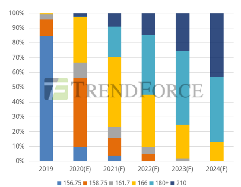 未來三年多尺寸并存,22年M10+G12市占比達55%