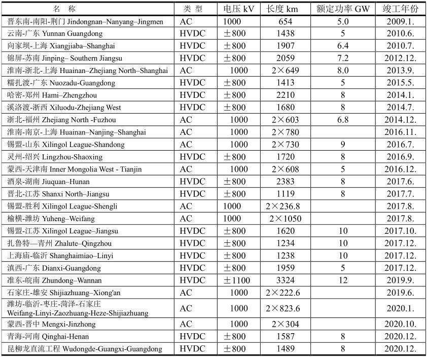 在建或準(zhǔn)備建設(shè)的特高壓線路