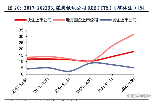 ROE 數(shù)據(jù)方面,煤炭地方國企上市公司表現(xiàn)優(yōu)于央企上市公司。受益于煤炭價格的提升, 資產(chǎn)收益率在 2020 年后迎來了大幅度增長。民企上市公司整體表現(xiàn)弱勢,ROE 呈下降趨 勢,遠低于國企央企表現(xiàn)。PB 估值方面,2020 年后隨著企業(yè)經(jīng)營效益改善和煤炭板塊整體 股價的提升,國企央企上市公司的該項指標(biāo)也有一定程度的增長,走勢與 ROE 接近。但考 慮到 ROE 的增長幅度更為明顯,我們認為 PB 的增長仍不足以完全反應(yīng)企業(yè)效益增長的速 度。而煤炭行業(yè)在能源政策導(dǎo)向調(diào)整與電力市場化加速推進背景下,疊加新一輪煤礦產(chǎn)能周 期,供需或?qū)㈤L期趨緊,煤炭公司的高收益有望維持,內(nèi)在價值有望逐漸被市場認可,估值 有望迎來進一步修復(fù)。