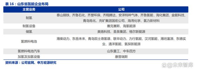 山東依靠扎實的氫能產業(yè)鏈落實“氫進萬家”政策,未來氫能發(fā)展將與燃料電池示范城市群平行。山東省企業(yè)布局: