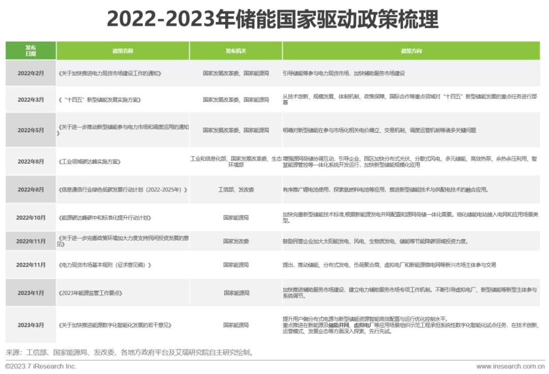 2022年能源局和發(fā)改委發(fā)布《“十四五”新型儲(chǔ)能發(fā)展實(shí)施方案》,方案中指出探索推廣共享儲(chǔ)能模式。鼓勵(lì)新能源電站以自建、租用或購買等形式配置儲(chǔ)能,發(fā)揮儲(chǔ)能“一站多用”的共享作用。