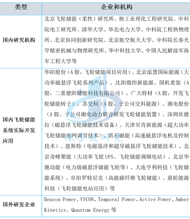 表3 飛輪儲能系統(tǒng)和裝置開發(fā)應用重點機構