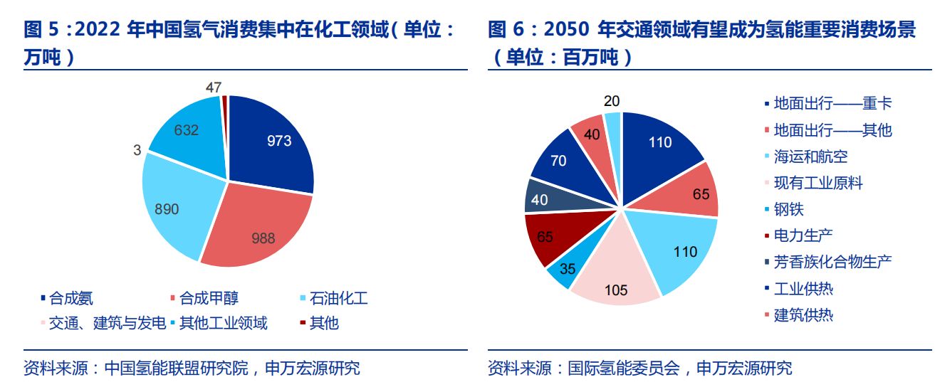 1)氫氣作為清潔能源,在碳中和愿景下需求較大:根據(jù)中國氫能聯(lián)盟研究院,預計到2050 年全球氫氣需求量將達到6.6 億噸,其中中國約為1.95 億噸(2022 年僅0.35 億噸)。