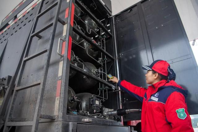工作人員在為氫燃料物流重卡加氫。唐奕 攝(新華社)